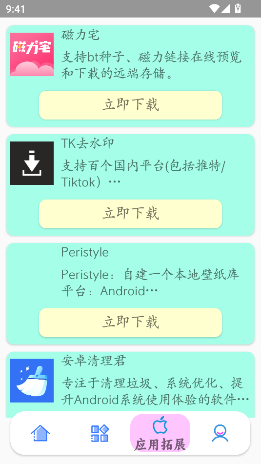 3.通过「应用拓展」板块动态添加新工具(如「Peristyle壁纸库」「安卓清理君」)。
