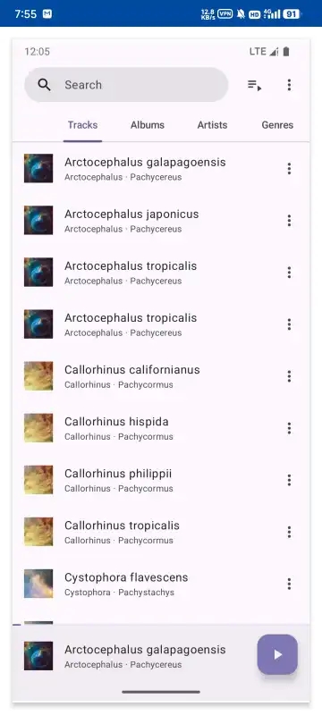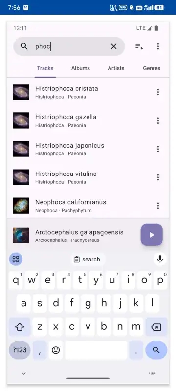 Phocid官方版是一款沉浸式音乐播放app。每一首曲目都被赋予如加拉帕戈斯海狗般的拉丁学名与艺术标签,让你在聆听音乐的同时,漫游于声学与自然史的交叉地带。Phocid曲目标签、进度条与下一首预告,无冗余控件,让听觉焦点回归音乐本身。