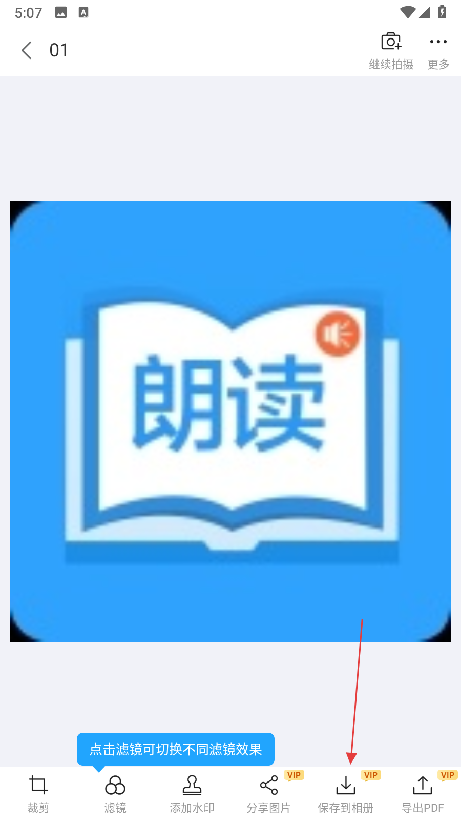 4、图片调整好进入编辑页,可按需用滤镜功能优化,最后点击保存到相册即可。