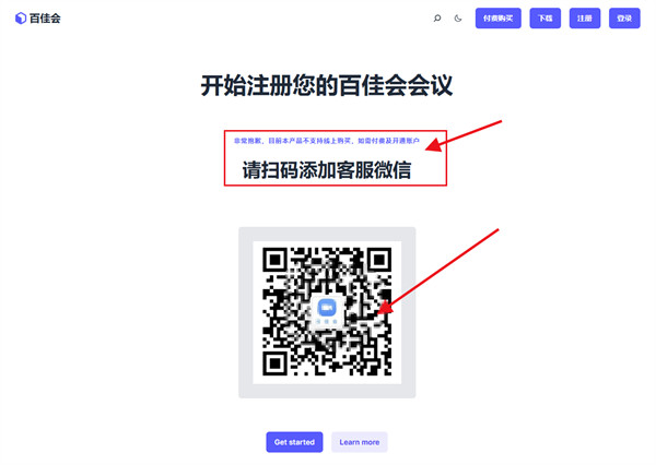 3、如果想直接进行续费,可直接点击右上角【付费购买】轻松就能进行购物,并开启流畅的会议聊天;