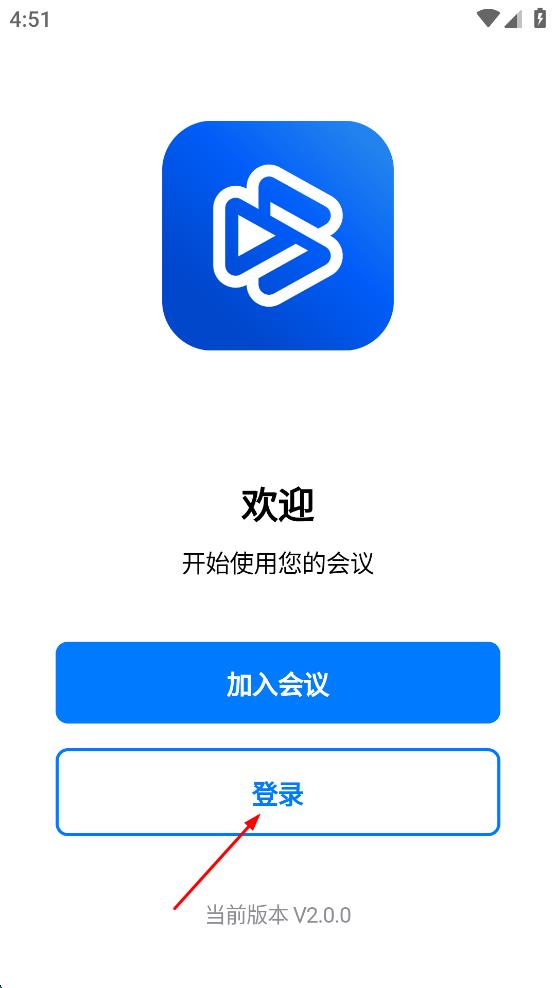 2、进入显示“欢迎 开始使用您的会议”的页面,在该页面中找到“登录”按钮,点击“登录”按钮,进入用户登录页面。