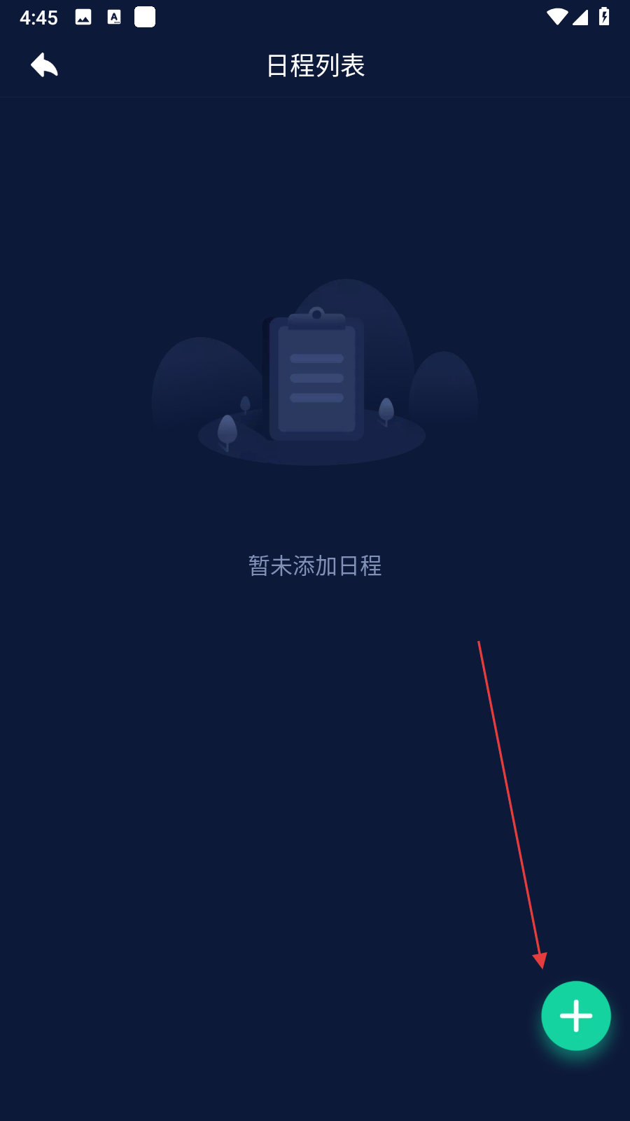 3、在日程列表页面,点击右下角绿色+按钮,进入日程设置页面。