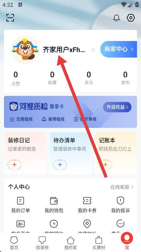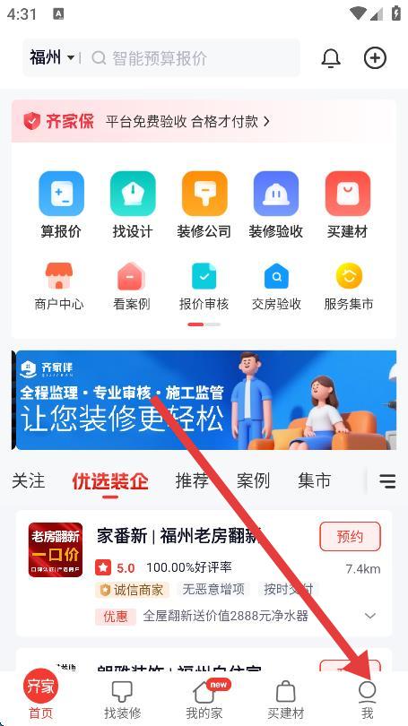 1、打开齐家装修网,点击底部导航栏右下角的我选项。