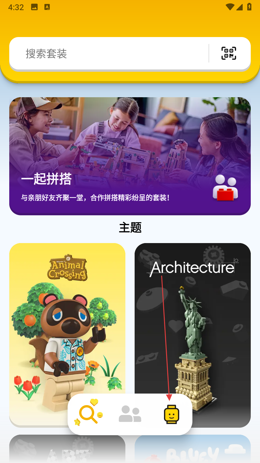 1、打开乐高拼搭指引应用,在主界面点击底部右侧的小人图标,进入个人相关页面。
