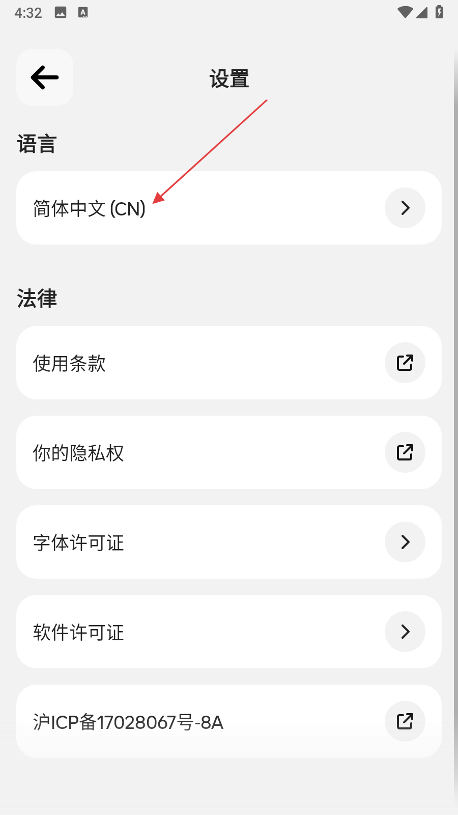 3、在设置界面中,找到语言选项并点击,弹出语言选择窗口。