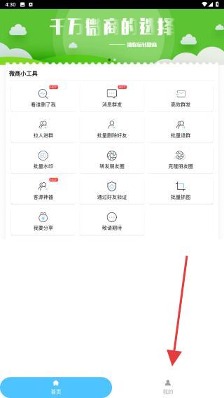 1、打开微商水印截图APP,在首页内点击右下角我的图标。