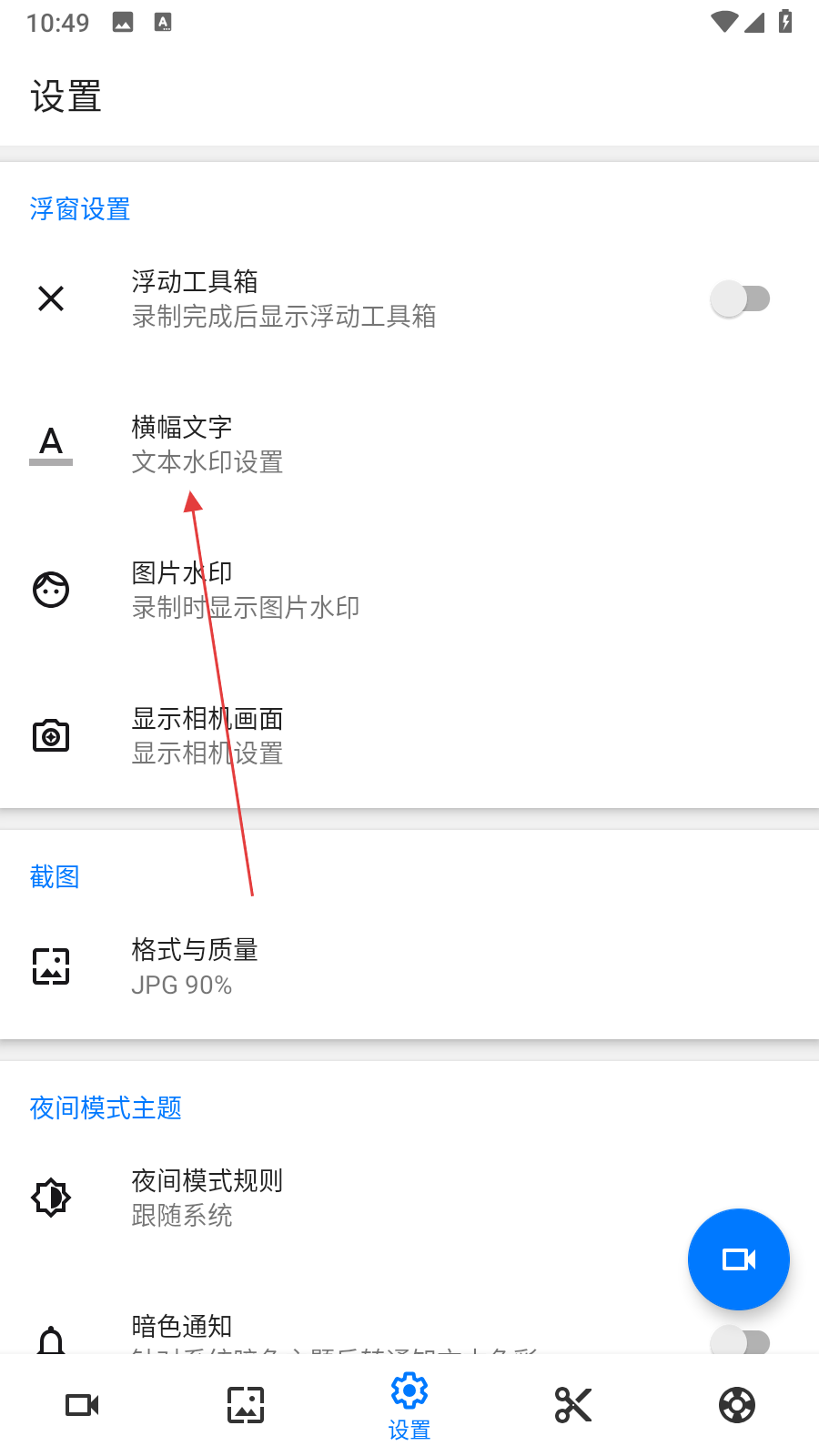 2、在设置界面中,找到横幅文字选项并点击,进入文本水印设置页面。