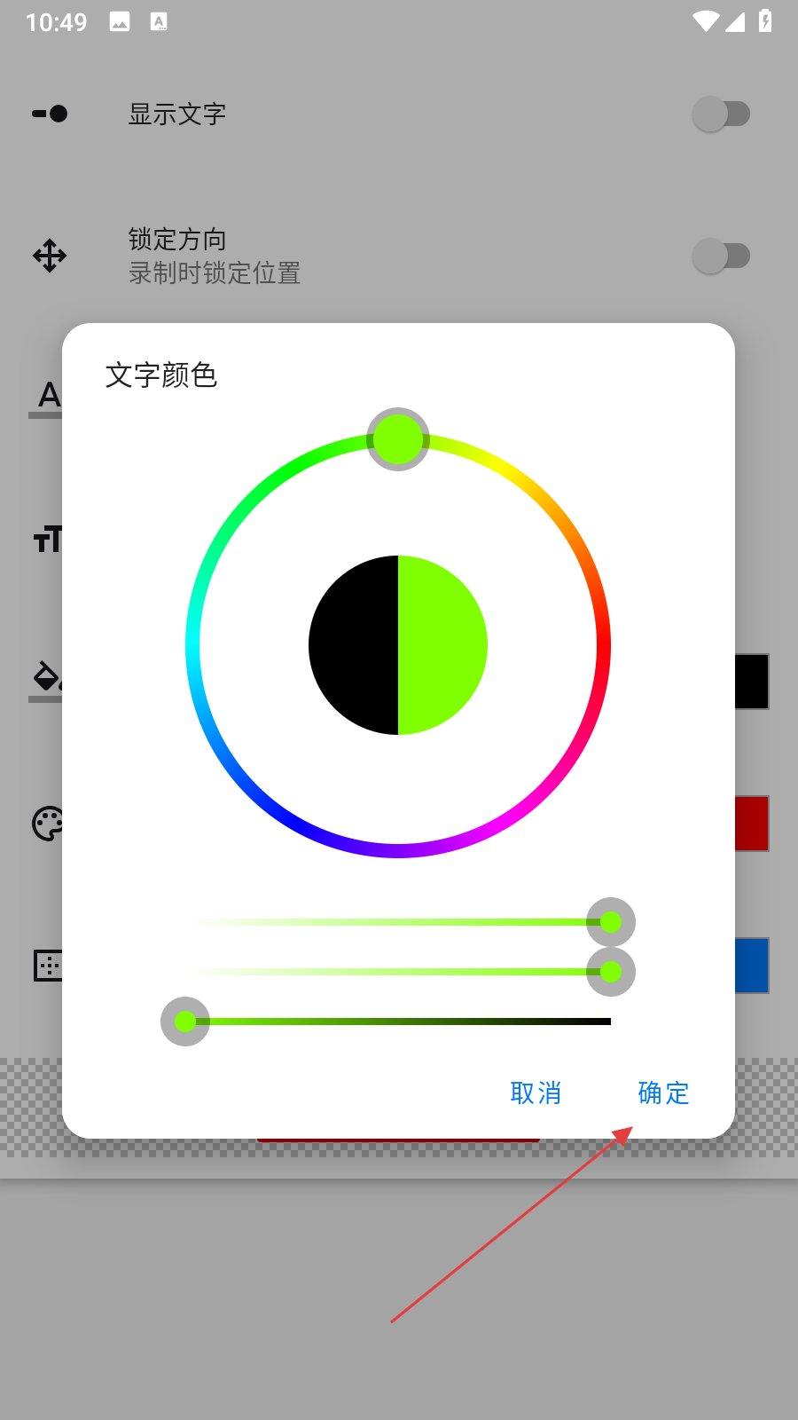 4、在颜色选择面板中,通过色轮或滑块选取想要的文本颜色,选取完成后点击确定按钮。