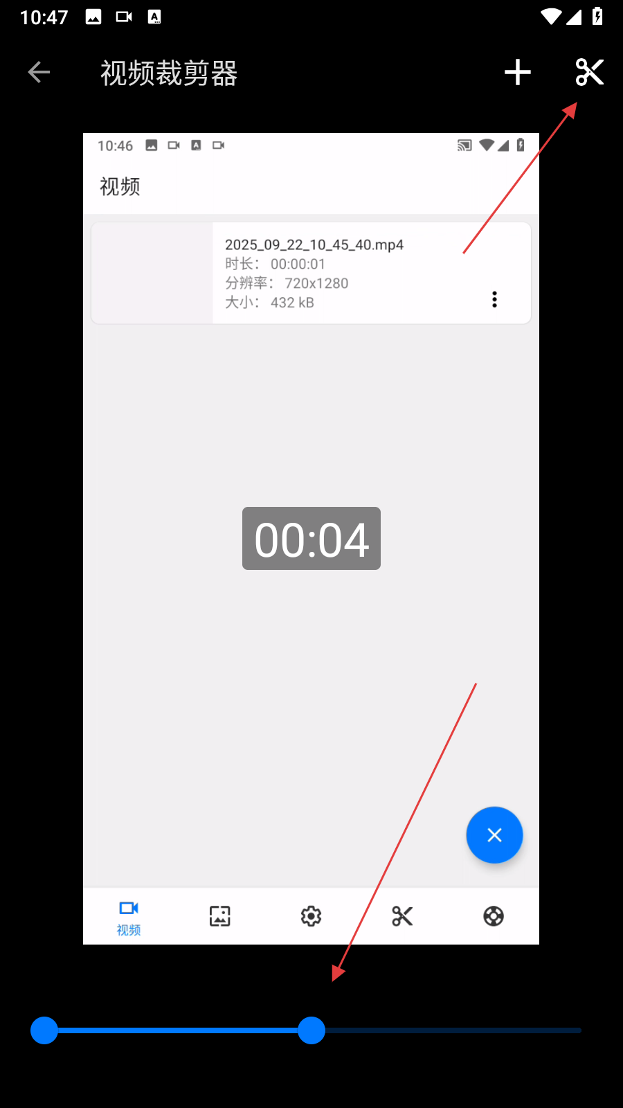 3、拖动底部进度条的滑块,调整要保留的视频片段范围。