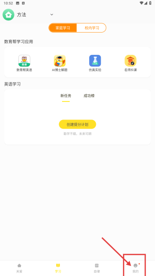 1、打开教育学习应用,点击底部我的选项,进入个人中心页面。