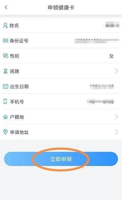 第四步:如实填写个人相关信息,点击“立即申领”;