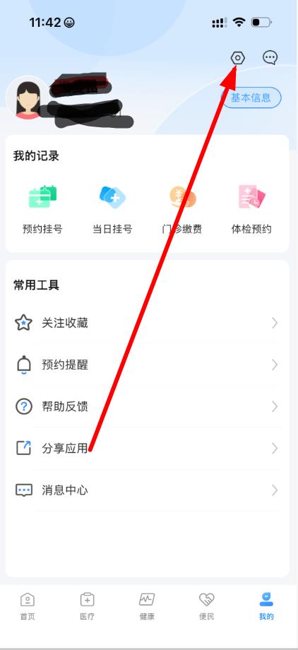 2、在个人界面,点击右上角设置图标,进入设置页面。