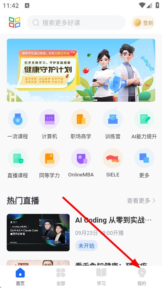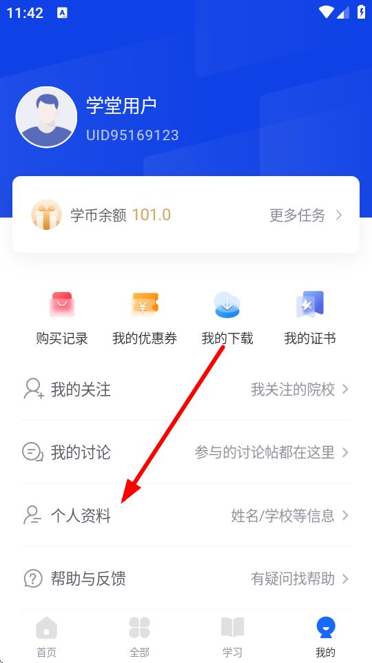 1、打开学堂在线APP,点击底部导航栏中的我的进入个人页面。