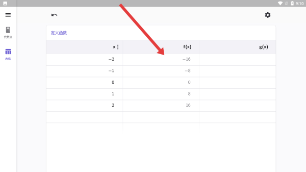 3、查看表格中x取-2、-1等值时f(x)的对应结果,验证自定义函数的计算是否符合预期。