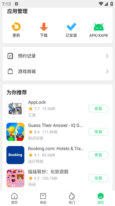 5、可以查看到自己已经下载的软件和预约的软件游戏的记录,方便用户们去进行管理。