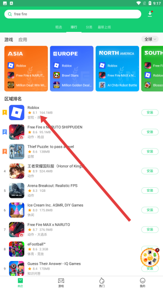 2、在应用排行列表中找到Roblox应用,点击进入其详情界面,了解应用相关信息。