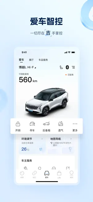 吉利汽车是一款专为吉利车主打造的一款掌上服务软件,用户只需要绑定自己的吉利爱车,就能够随时随地掌握车辆的实时数据,并且通过远程控制功能轻松操控车辆。你可以使用软件直接查看车况信息、引擎启动、车窗控制、空调开关、座椅加热,都能够一键完成,让用车变得更加的智能便捷。软件内还配备地图索引功能,提供目的地搜索、导航、路况查询、电子围栏等实用服务,让出行更加省心。而且,软件还为用户提供了最新的关于品牌的动态与车型专题,方便用户了解车辆的最新信息。