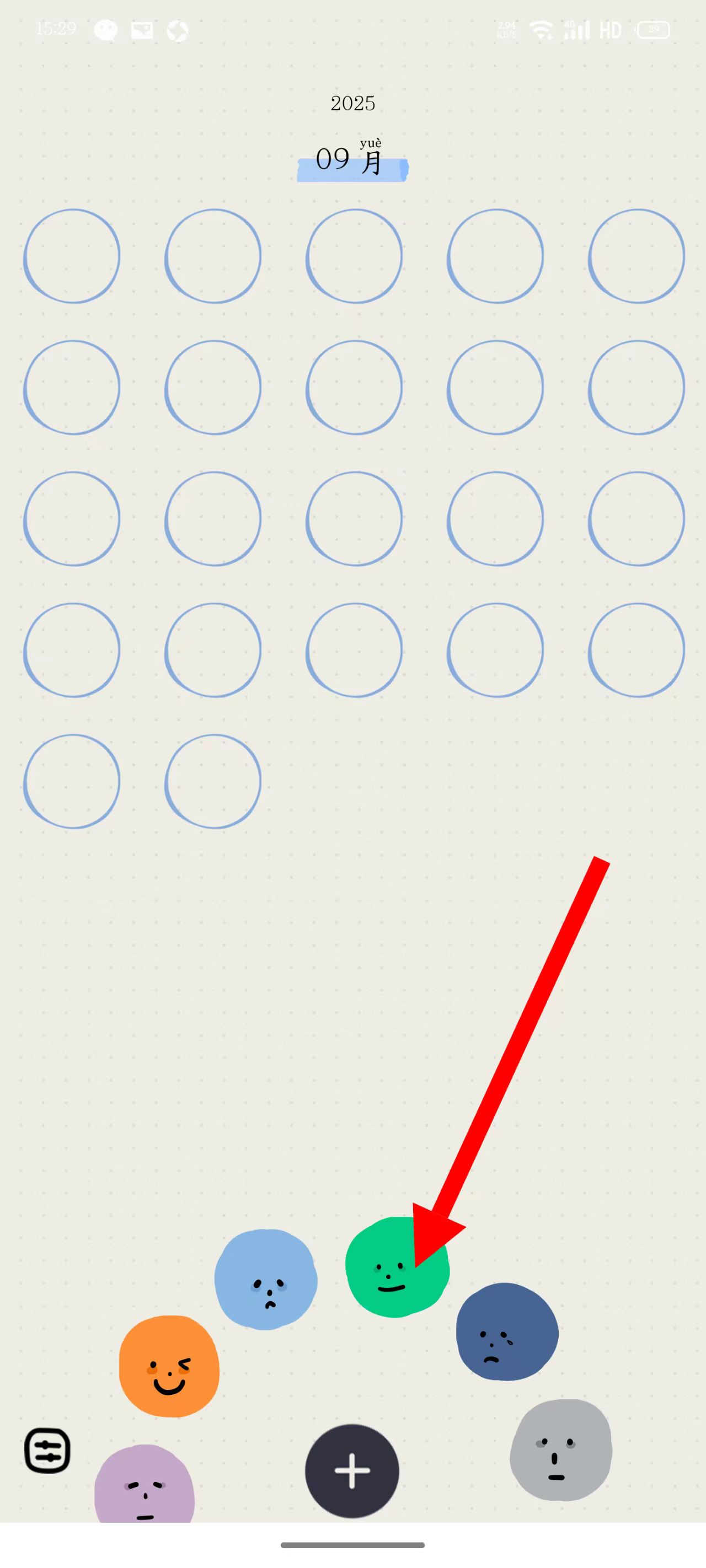 1、点击页面底部的表情环,选择对应心情的表情。