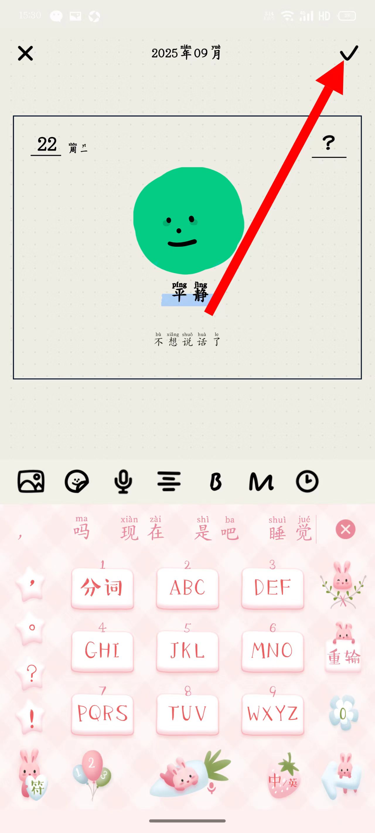 3、输入完成后,点击右上角的对勾图标。