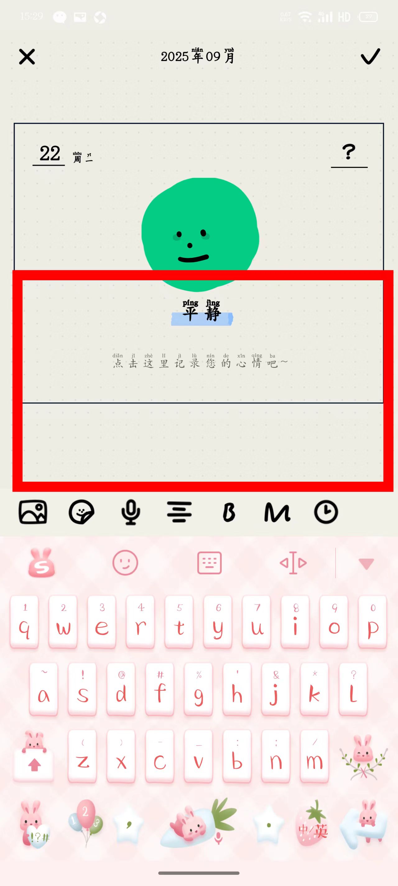 2、在记录区域,输入当天的心情描述。