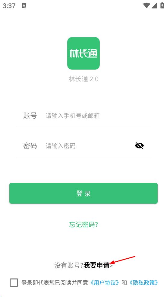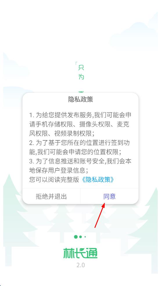 1、打开林长通APP,在“隐私政策”弹窗中,点击“同意”,进入登录页面。