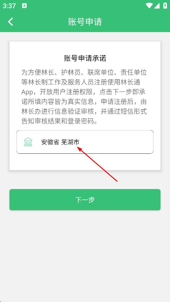 3、在账号申请页面,先选择所在地区,确认好地址进入填写信息。