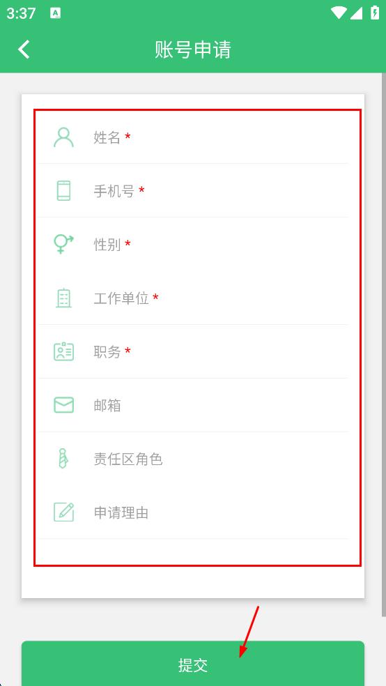 4、填写相关的个人信息,确认填写信息无误后,点击“提交”按钮,完成账号申请操作。