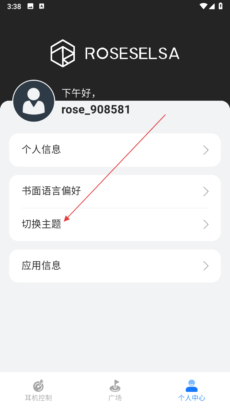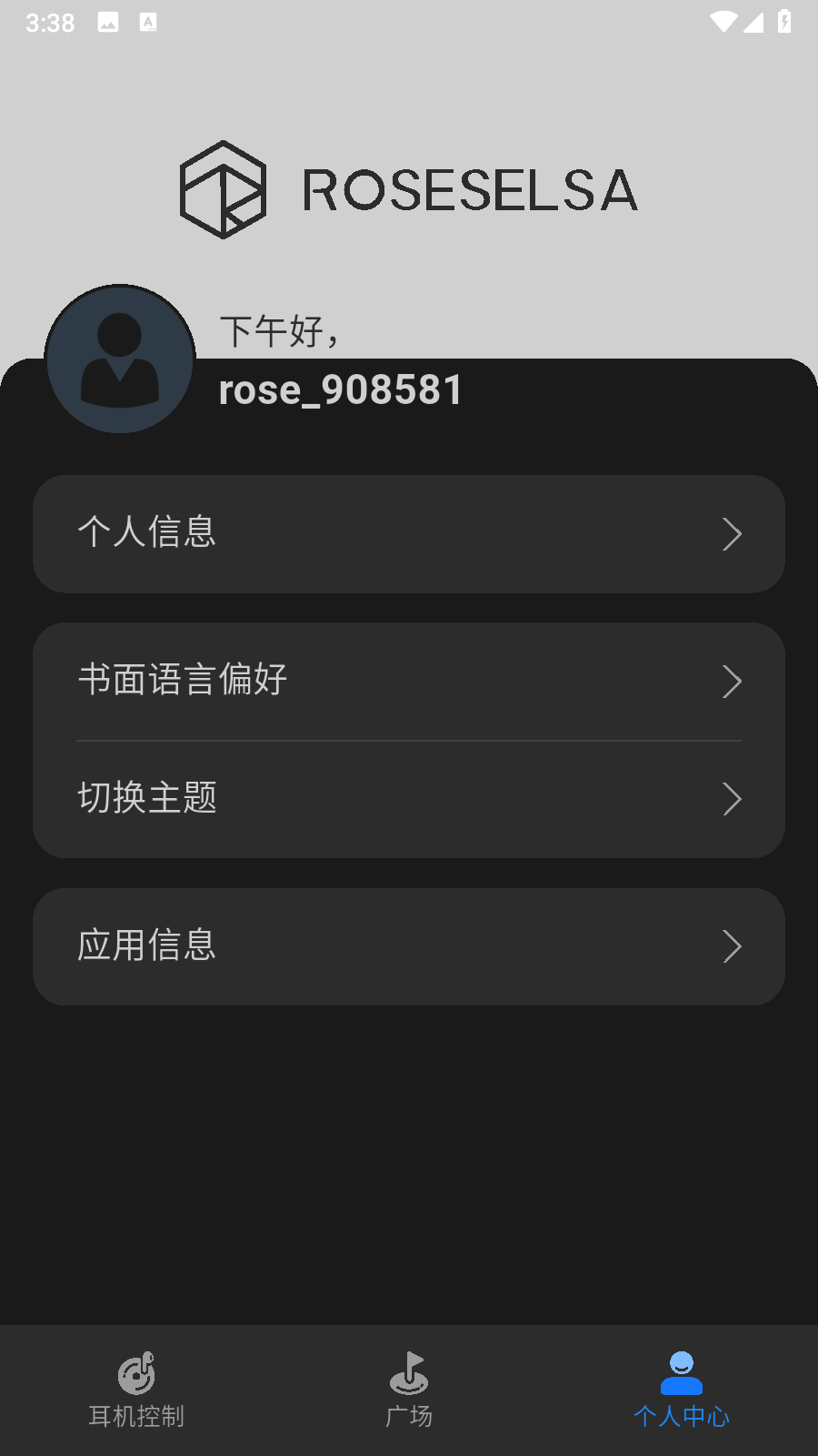 1、打开RoseLink应用,点击界面右下角的个人中心图标,进入个人中心页面。