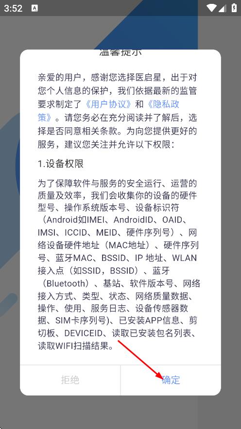 1、在温馨提示弹窗中,点击确定,进入首页。