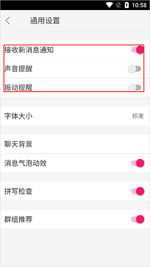 3、这个时候就可以在“通用设置”中选择并开启“接受新消息通知”。