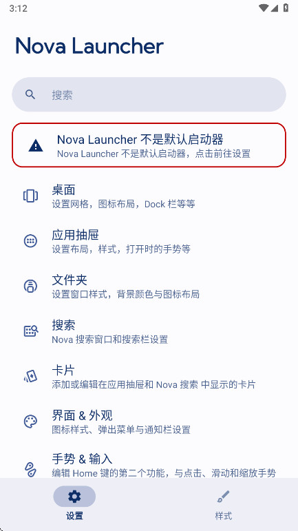 Nova Launcher app是一款功能强大的安卓桌面启动器,主打高度自由的个性化定制。用户可随心更换主题、图标、布局和动画效果,打造独特的桌面风格。应用还支持快捷手势操作、隐藏应用、滚动效果等实用功能,大大提升操作效率与体验。轻量流畅,兼容性强,是追求个性化与高效操作用户的理想桌面工具。