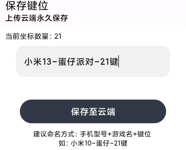 5、(选择性保存)您也可以将你本次的键位保存到云端储存,下次可以直接选择,无需再次定位按键。