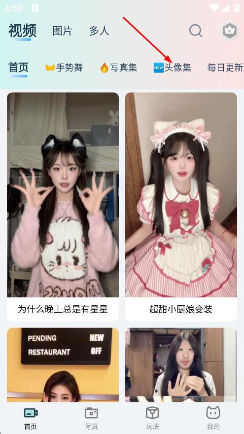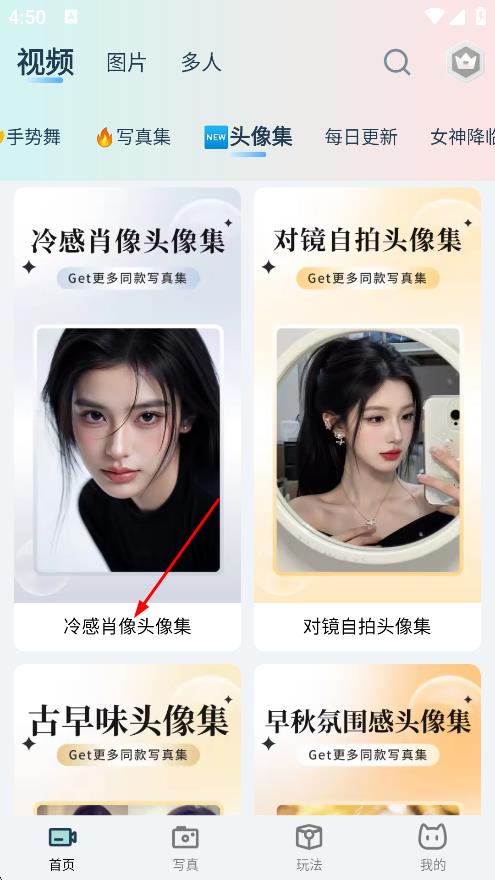 2、随后我们在首页,点击头像集,进入头像集页面。