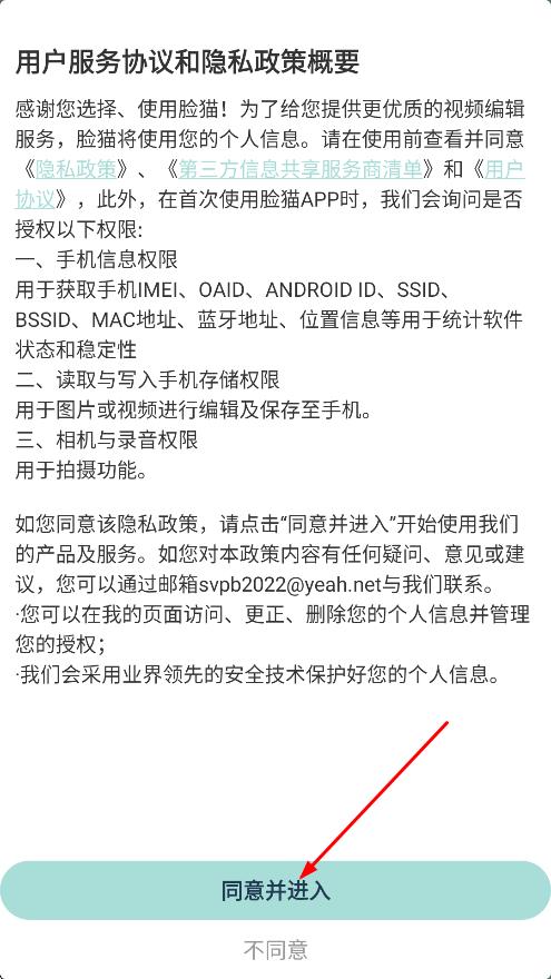 1、在用户服务协议页面,点击同意并进入,进入首页。