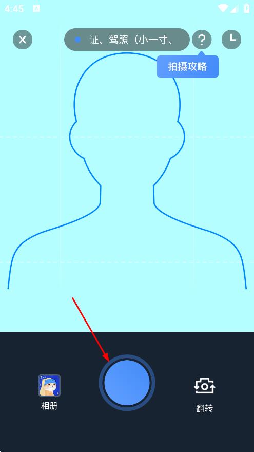4、在拍摄页面,可点击拍摄按钮拍摄照片,或从相册选择照片。