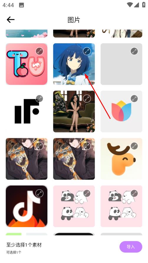 4、在图片选择页面,选择喜欢的图片,点击导入即可使用。