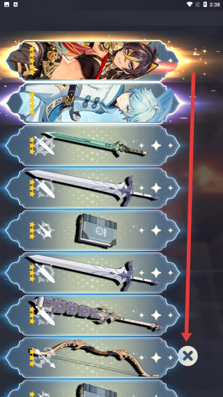 3、在抽卡完成后,可以点击查看获得的角色、武器等结果,查看完后点击×按钮结束本次模拟抽卡。