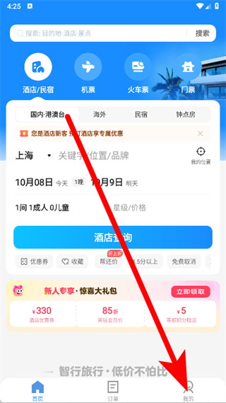 1、打开智行旅行APP,点击底部我的。