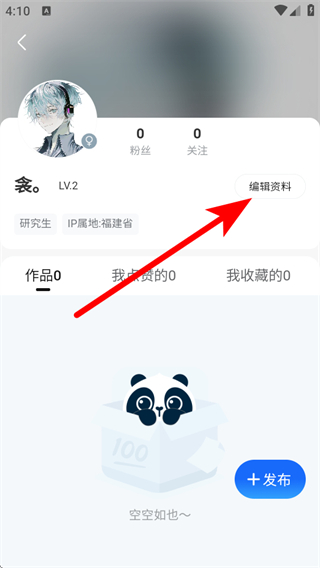 2、在个人资料的页面,点击编辑资料按钮,进入个人信息页面。