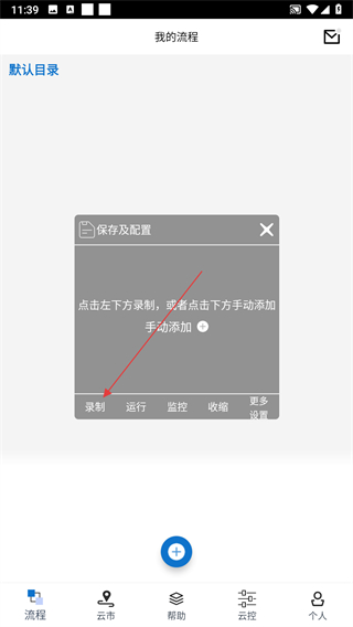 3、确定运行模式后,界面会弹出浮窗,在浮窗中点击左下方的录制按钮。