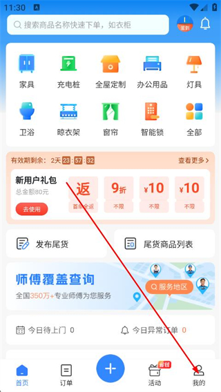支持家具、卫浴等多种服务类目以及配送、安装等多种服务类型下单。