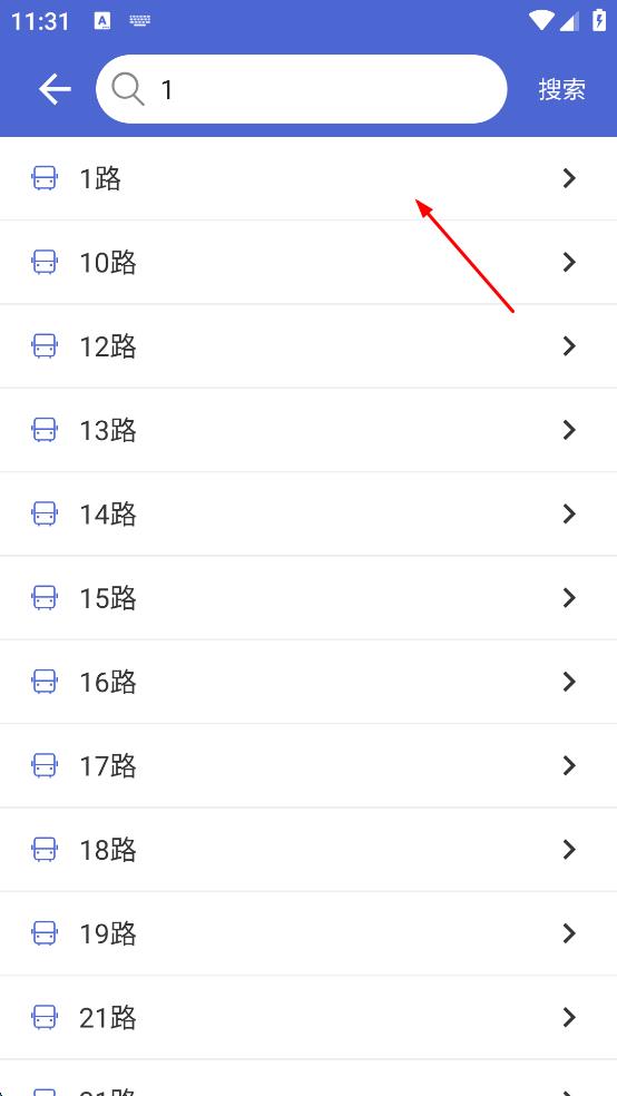 3、在搜索结果页面,选择要查询的公交线路,进入该线路详情页面。