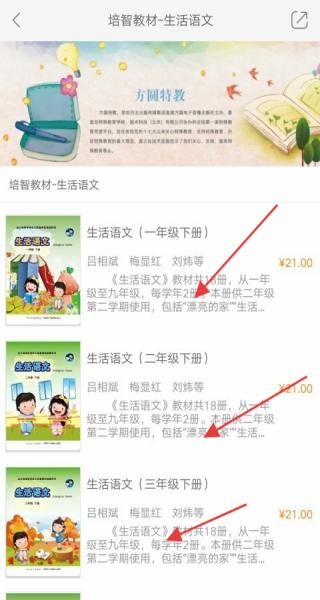 2、教材体系完善,以培智教材,生活语文为例,从一年级到九年级共18册,每学年2册,分学期使用,明确标注价格,方便用户按需选购。