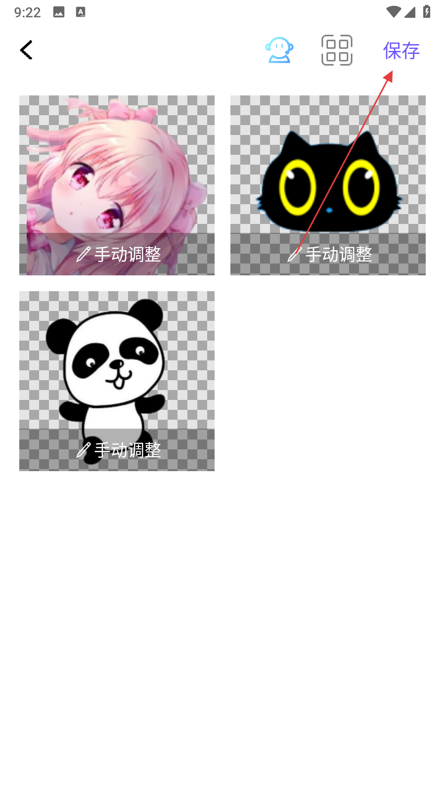 3、抠图完成后,可对每张图片进行手动调整优化边缘,调整完毕后点击右上角保存按钮,即可将批量抠图后的图片导出到相册。
