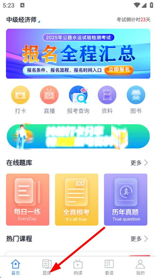2、在题库页面,点击每日一练,进入每日一练题目页面。