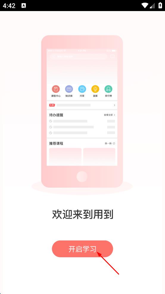 3、在欢迎来到用到页面,点击开启学习按钮。