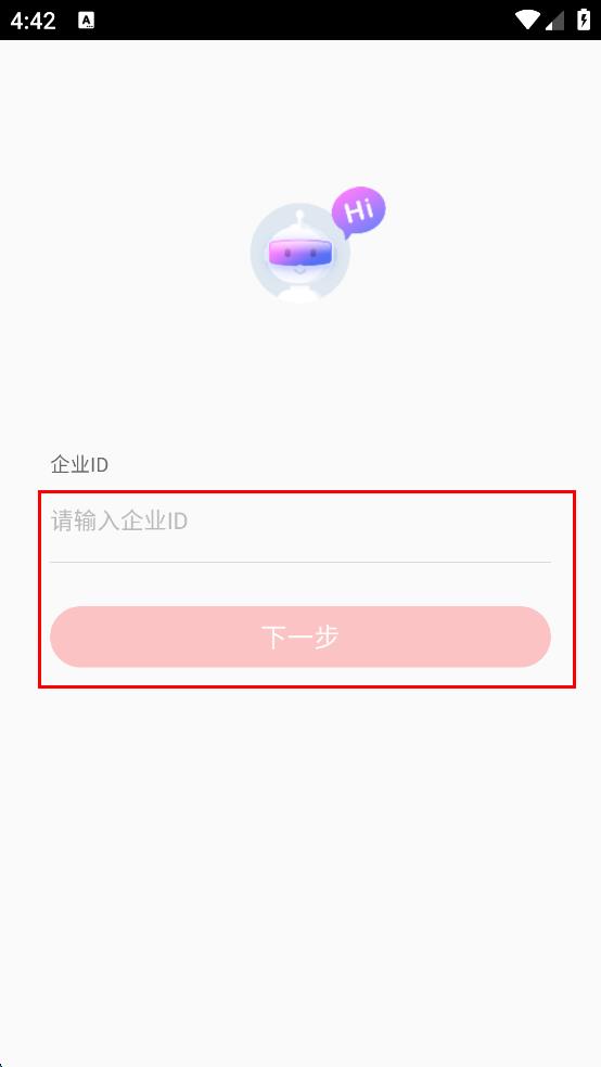 4、进入企业ID输入页面,输入企业ID,点击下一步。