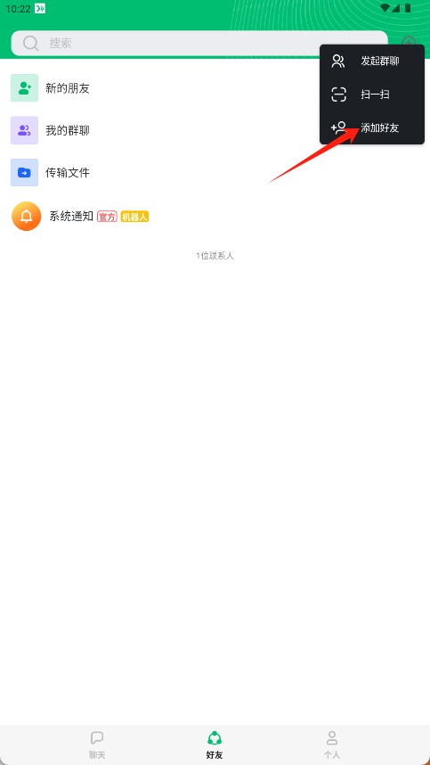 3、在好友页面点击顶部功能菜单中的“添加好友”按钮,即可开始添加。
