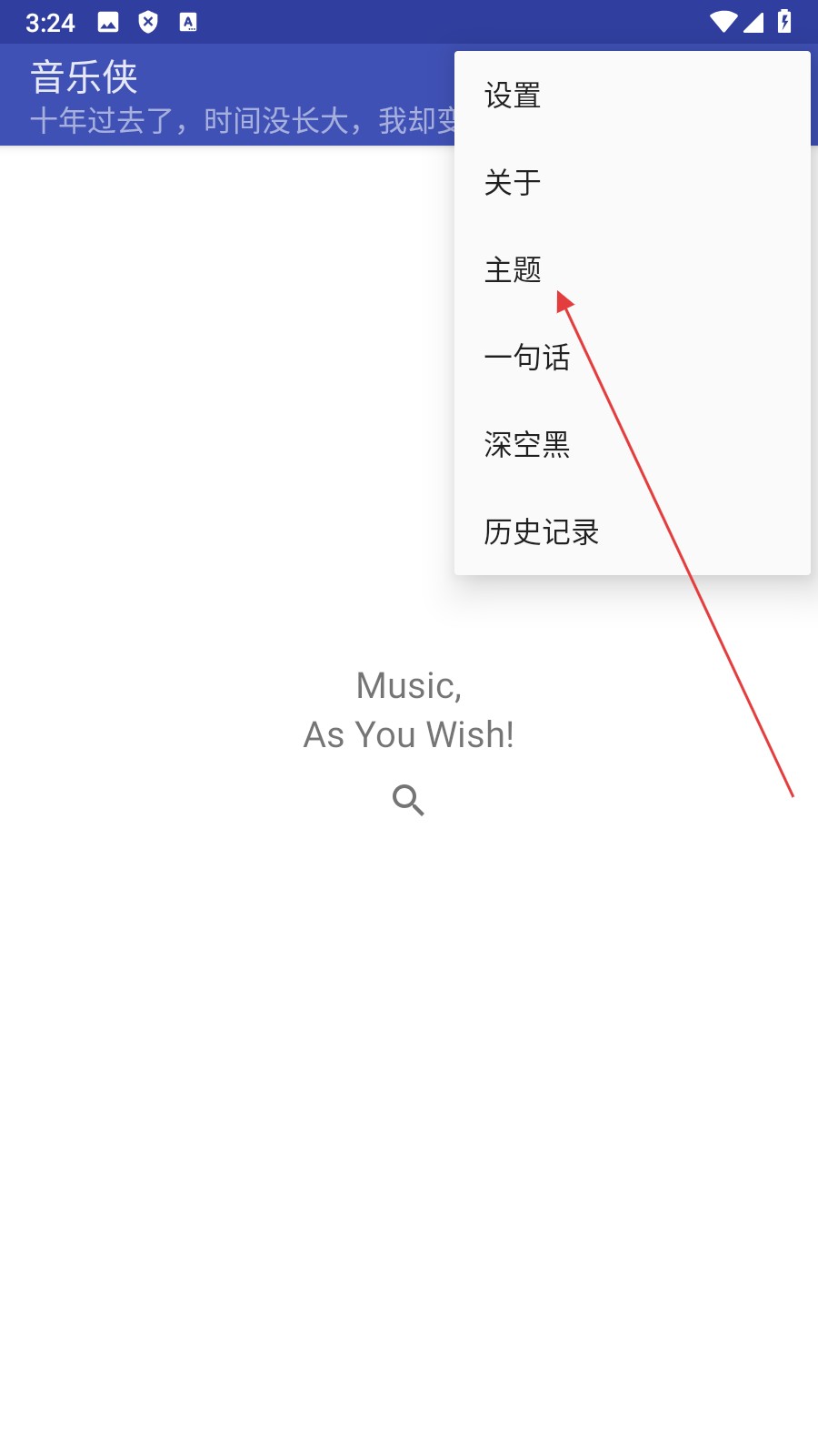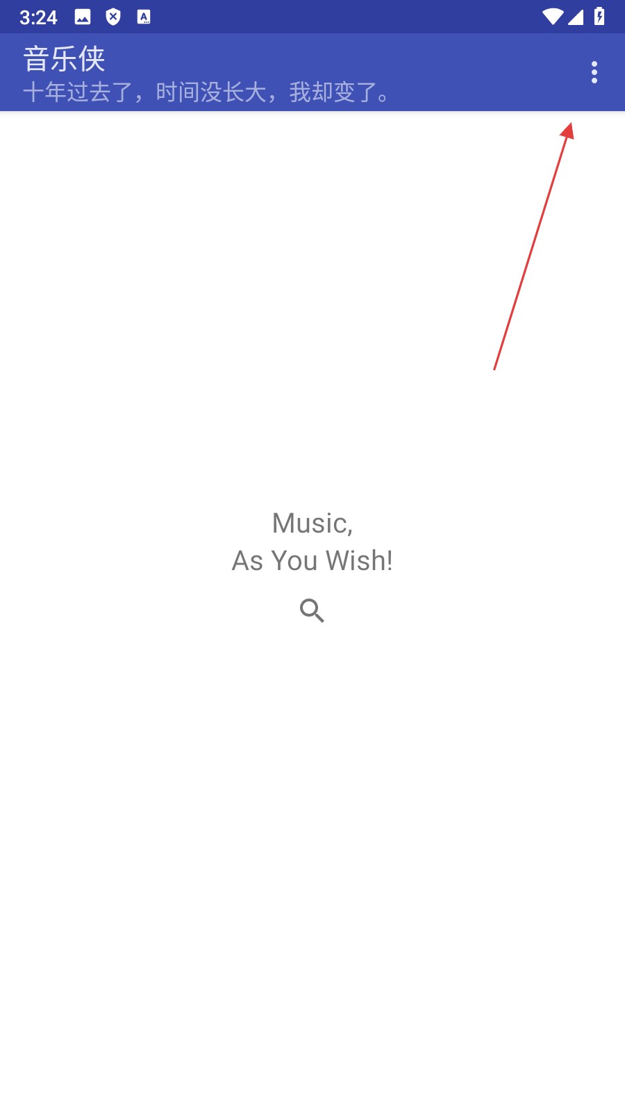1、在音乐侠主界面,点击【右上角三点菜单】,展开功能选项列表。