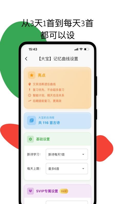 提供强大的设置功能,支持自定义设置每天学习古诗的数量,满足个性化需求;
